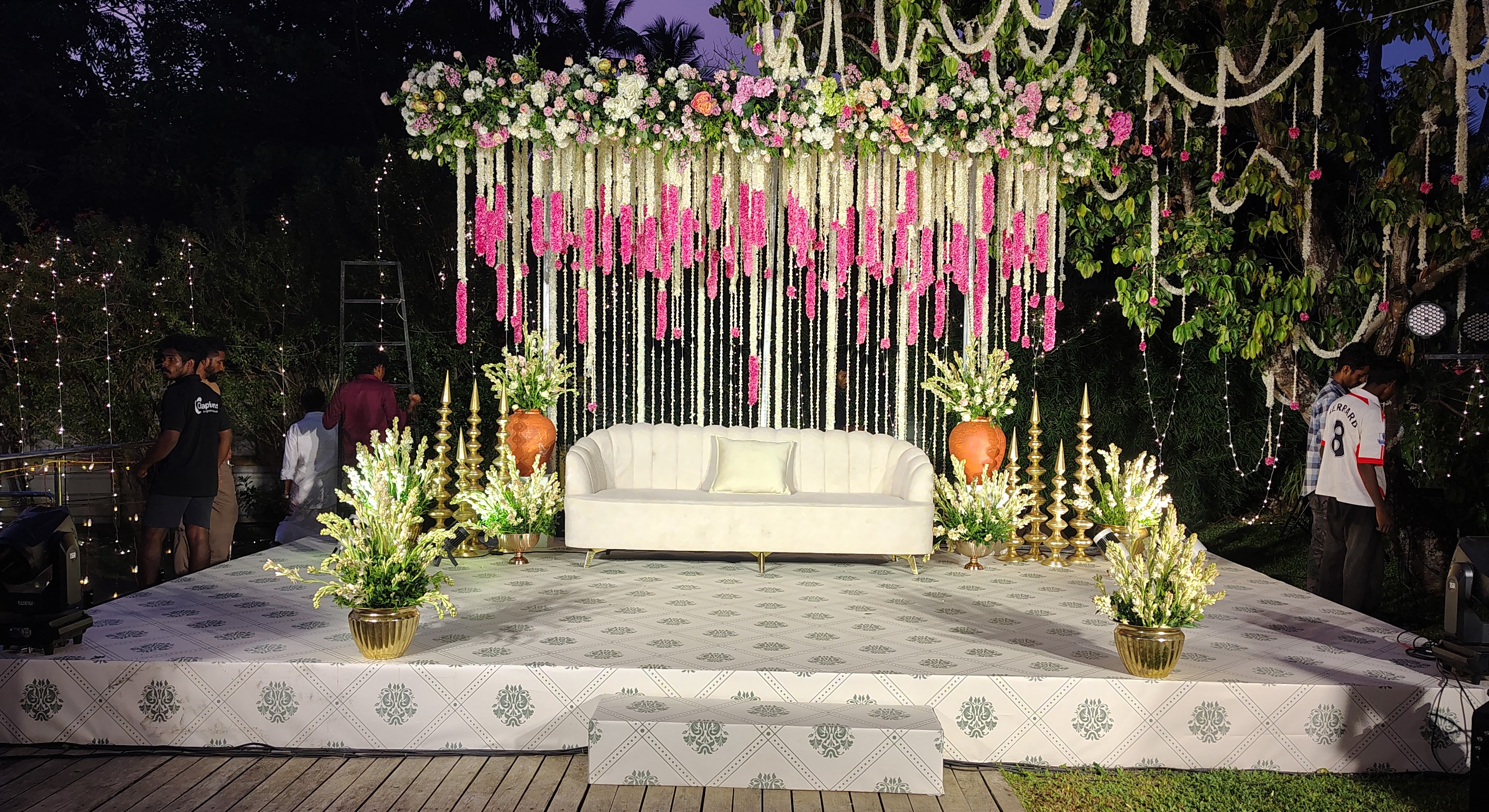 Serving as Production Lead for Ms. Rishika Paul’s wedding was a key milestone, managing Reception, Sangeet, and Madhuramveppu. Consecutive events at Chakolas demanded precise execution, including a 9,600 ft crystal hangings. Overnight transformation from Sangeet to wedding showcased strong coordination, efficiency, and seamless delivery under tight timelines.